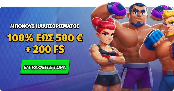 | Μπόνους καλωσορίσματος καζίνο | 100% έως 500€ + 200 FS + Bonus Crab | Καζίνο |